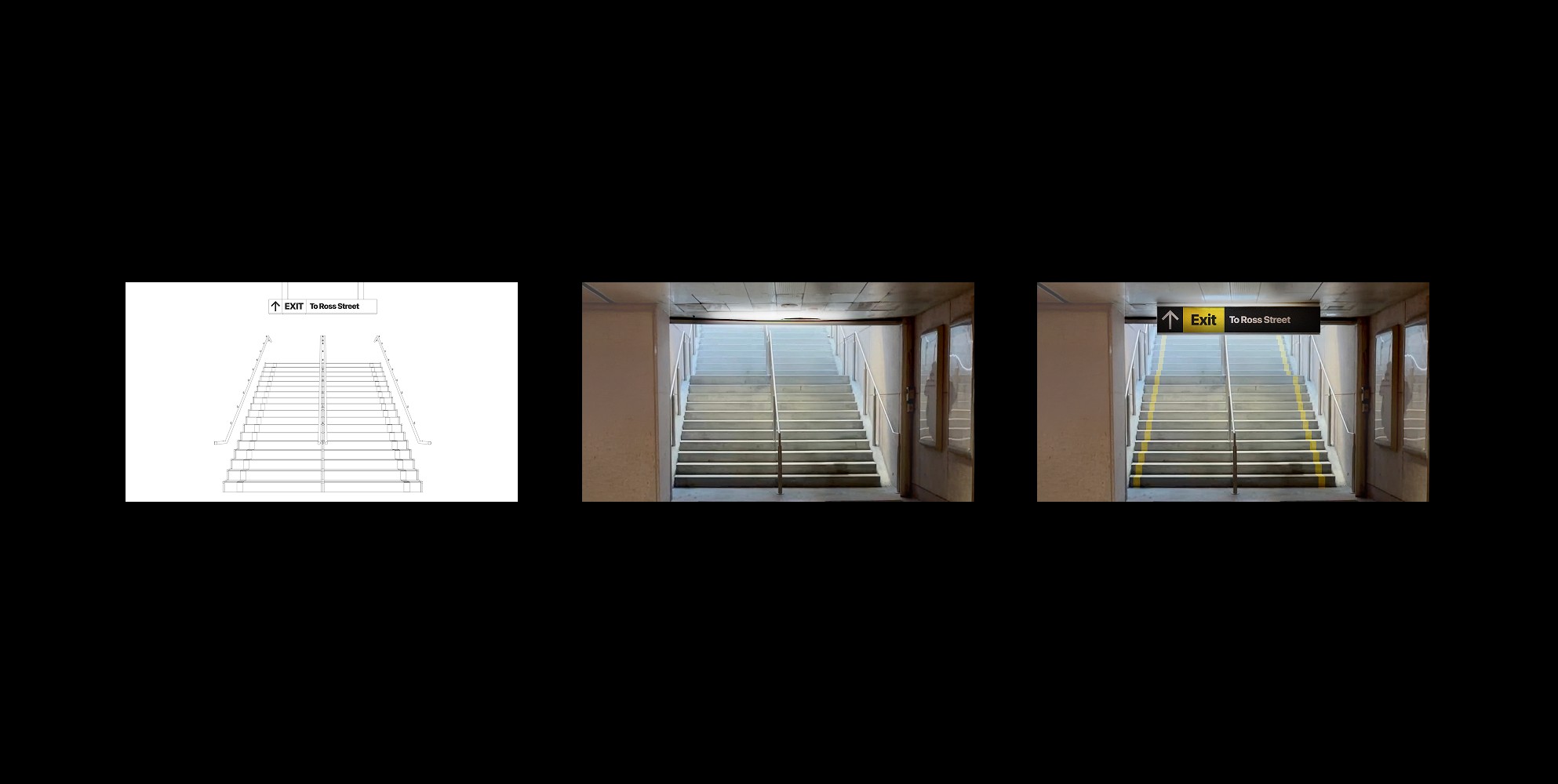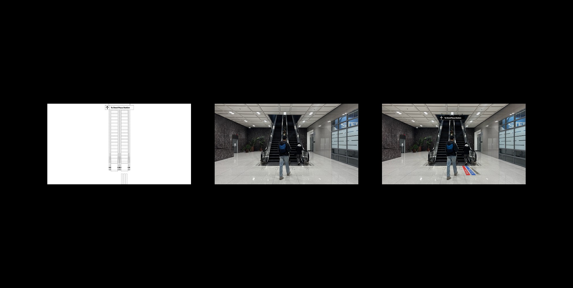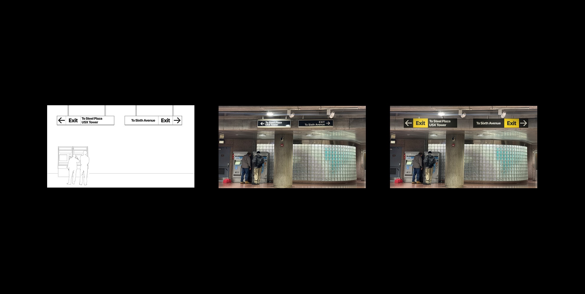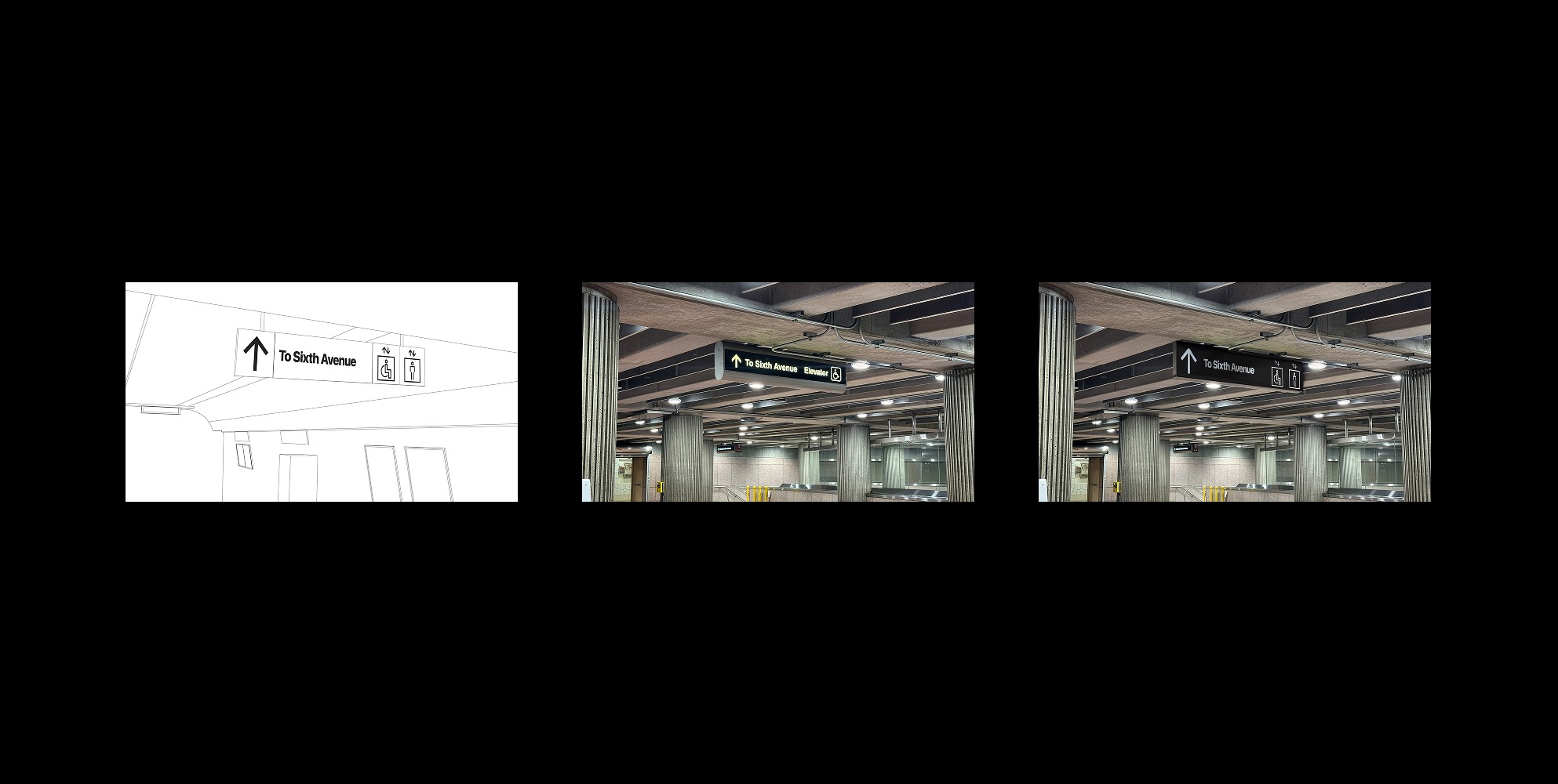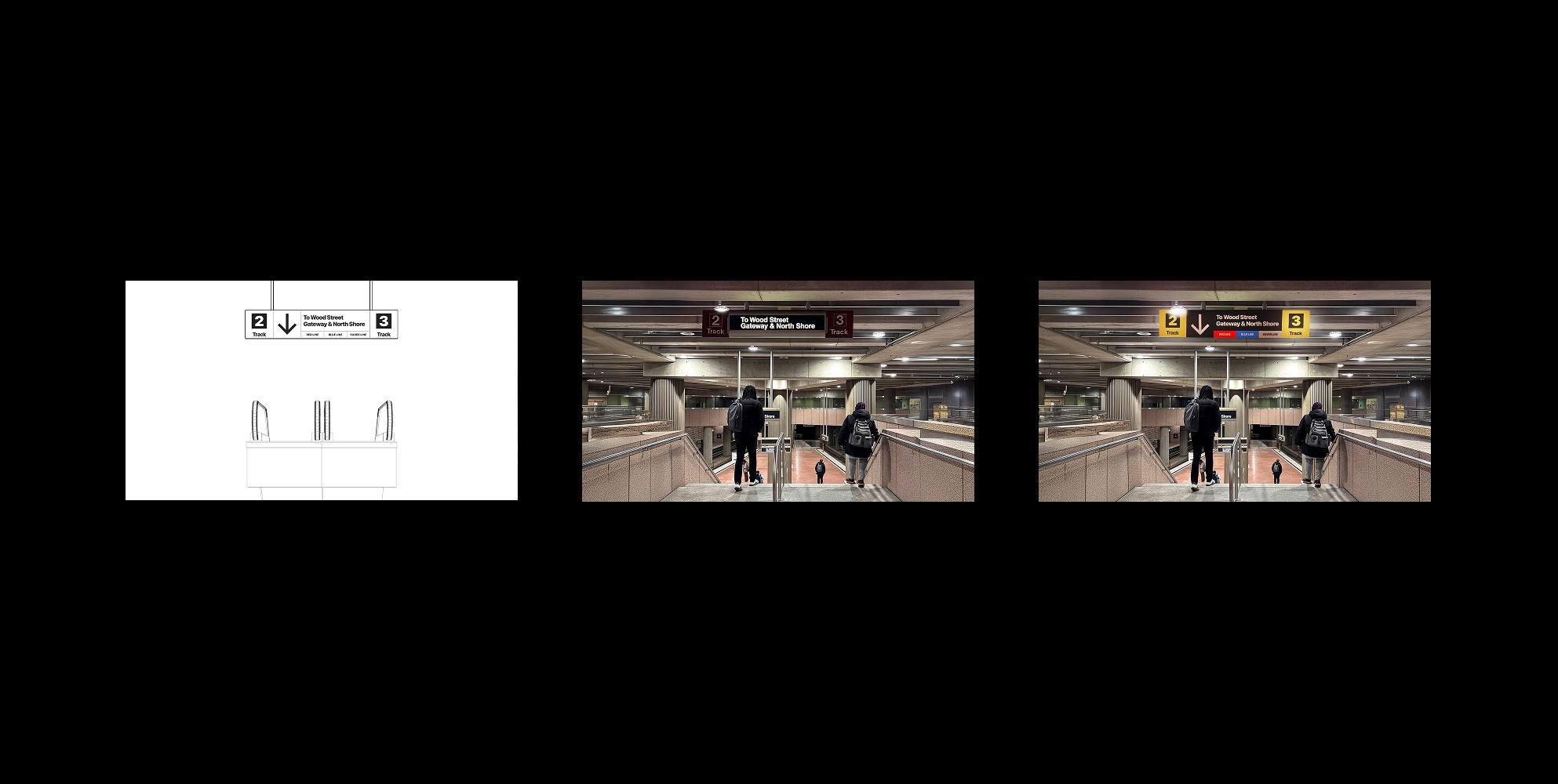 We mapped the redesigned signage onto real station environments, from sketch to installation.